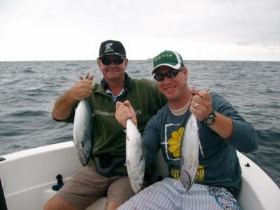 We started out South of Durban and caught some Mackerel to use as live bait, after that I set my spread and with my new out riggers and we started trolling some small lures. It was very quiet and when we were heading North over Reef no.1 we had a triple hook up of some Eastern Little Tuna. I continued all the way over the flats until Umhlanga Rocks were we turned to head south and I changed over to trolling the live baits which we pulled all the way to the Umgeni mouth along the 20m contour line with no takes.