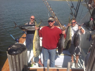 Captain Bob Gerkens brought his boat "Hot Tuna" back to Beach Haven from Morehead City last week, a "50 hour canyon fishing trip" as Bob calls it. In the southern canyons a number of nice Mahi were caught of which 4 were gaffers. They also caught some blackfin tuna and released a 4-foot mako.
