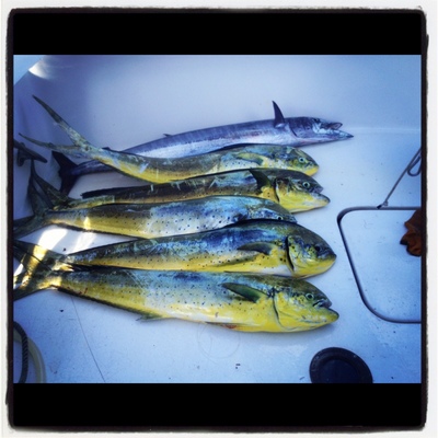 The Report for the last weeks of November. Mahi Mahi action none stop and wahoos making those reels scream. There has been heavy rains making water conditions and water quality close to shore brakish, but the many floaters and debree from the river run off are producing nice currents were all the mahi and wahoo action is cranking.