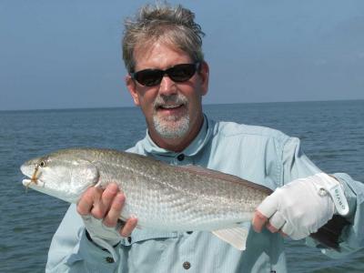 Now that the weather is warming up it's beginning to look a lot like summer. Last week I had Lawrance Davis out for three 1/2 days along with his wife. They caught so many fish that they released them all on the third day. She caught most of the reds on cut bait using bally hoo. Lawrance caught most of the trout on Gulp. They seemed to like the pearl white in 4 " the best but they did hit all the colors we threw at them.