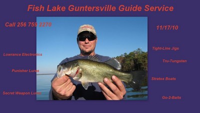 We are slowly moving to a winter time bite on Guntersville, and because of that we have two distinct patterns that the fish are being caught on. If we have some over cast skies and south winds we have found fish shallow in the backs of coves and creeks in about 2 to 4 feet of water. When the sun has been out and the wind from the North and East then the bass have showed signs of winter type movement to the river ledges hitting slower type baits.