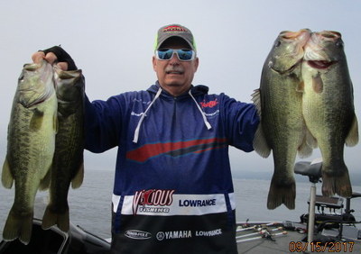 The movement of the bass as they transition into fall has moved the fish and some of the spots you caught them in a few days ago may be different, but if you get to the transition spots in less than 12 ft. of water you will find the fish. The Missile Bait “48” stick bait is a really good down size choice right now, as it falls with a good attractive wobble and is producing lots of bites. We are also fishing Tight-Line swim jigs with small swim baits like the 4.5 inch Missile Bait Shock Wave swim bait; remember match the hatch.