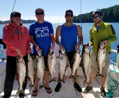Chinook salmon fishing has continued to be good in close to shore and we are seeing a few Coho show up as well. The early morning bite has been the best, but the fish have been biting in bunches at different times in the day. Anchovies and small Silver Horde spoons have been good the past month and continue to do well. The Ling cod fishing has been good all year and will get even better as September rolls on and into October. The Halibut has been closed by DFO which is a real surprise considering most estimates are that sport fisherman have not taken their quota. Please send out an email to your member of parliament and ask for accountability at DFO.
