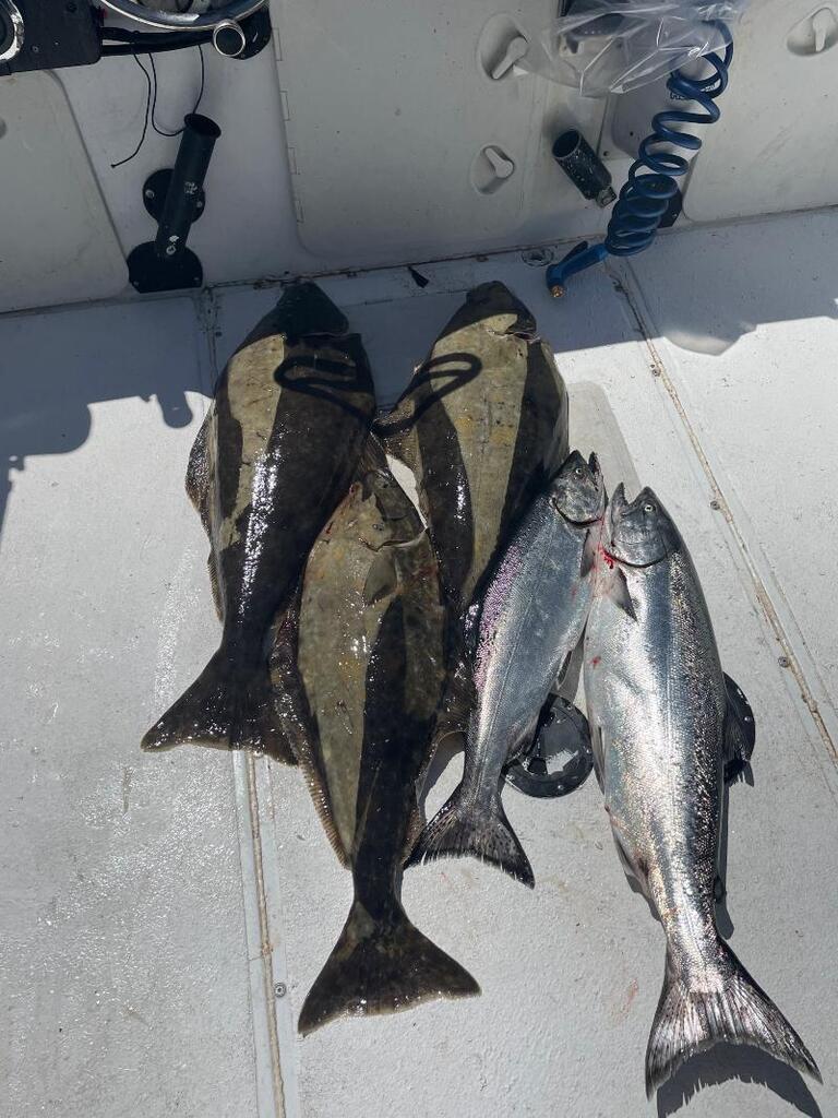 Halibut fishing has been consistent the past couple of weeks. The Salmon Eye guides have been picking up limits on halibut which is 1 per person per day and 2 as the carrying limit. Our fishing guides are traveling about an hour to get the halibut and about 15 minutes or less for the salmon.