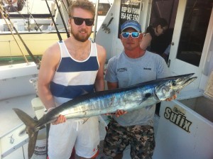 The last three days the weather has been mild, with temperatures in the low 60's, and moderate winds out of the northeast. The bit of chop and swell resulting from the northeast wind has produced some great fishing. We have caught a few sailfish trolling on fresh mullet strips, prepared from some of the mullet we've netted as they move down the beach. The mahi-mahi have been abundant out in 600-800 feet of water. On the 15th we found the remnants of a cuban raft floating offshore that had a nice school of dolphin swimming underneath. The next day we found a 55 gallon drum floating offshore and it too was loaded with mahi-mahi, up to 10 lbs. We are always on the lookout for floating debris as it invariably attracts tripletail, mahi-mahi and wahoo. No wahoo were landed from around the raft or drum, but we landed three nice fish while trolling live bonito around from 150 to 300 feet of water.