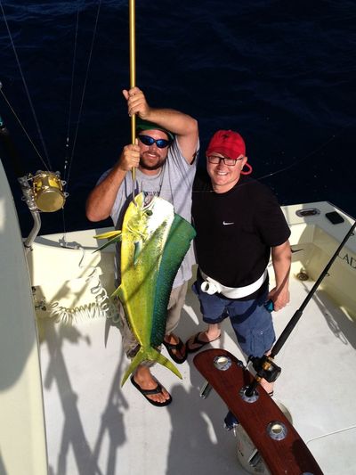 The views across the water from the sunny beaches of Fort Lauderdale, Florida have been those of the Lady Pamela II sportfishing fleet trolling the reefs for game fish. This morning Captain Darin and Justin had good luck aboard the Lady Pamela II, trolling up a mix of blackfin tunas and kingfish. They also boated a nice mahi-mahi around 30 lbs. That was a pretty good catch considering that fish had to battle through the blackfin tunas and kingfish to grab the bait!