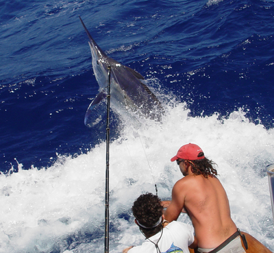 The big biters such as Sharks, Tuna and Marlin are mostly found offshore near reefs, wrecks and floating debris. For these guys, Anglers usually use live bait rigs such as a lively blue runner. These fish weigh in at an easy 60 to 70 pound and it is not uncommon for them to grow to over 100 pounds. So, heavy tackle is a must if you want to get these fish back to the boat in a timely manner. Line in the 60 to 80 pound test range with a heavy rod and large reel should get the job done but not without testing an angler's endurance!