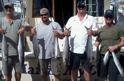 Lots of bait in our area now with numerous schools of small Bonito which we will now begin to use more often as a live bait. If the good numbers of Kings remain in the area and continue to bite we will troll them but if that bite slows we will be sending more and more live Bonito out into the spread. Good numbers of Ballyhoo inshore from 60 feet of water on into the 1st reef which is very shallow. Still an occasional school of Mullet offshore but most have moved into the waterways or passed to the South. When the wind comes around we'll see if the Mahi move any closer to shore.