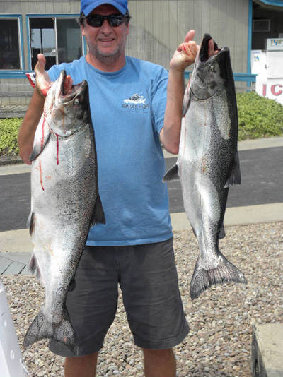 We found all year classes of Kings. The biggest King tipped the scale at 20lbs. We did a few really nice Steelhead with the biggest being about 11lbs. We did a few more Atlantic Salmon today, and one tipped the scale at 9lbs. Just a fun day for a father and son out on Lake Ontario. Check out some pictures.