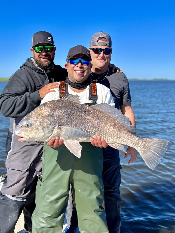 Day two for the Florida crew and we switched up: Todd Stiger, Eric Goeller, and Chris were aboard the Majek while Captain Matt took Craig McMicken, Elliot Diebolt, and “Woody”. Similar conditions to the first day but it didn’t check up these fellas. Big fish were the order of the day and they checked that box on the first stop. We continued to move around the marsh and they caught them at every stop.