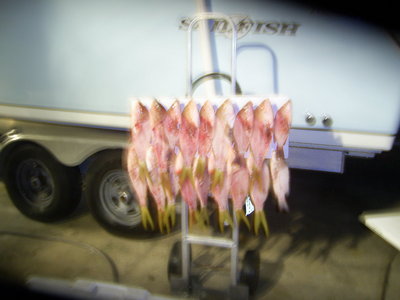 TOOK A TRIP ON WENSDAY, WE WENT TO MY LOBSTER HOLE FIRST I DID ONE DIVE AND BAGGED 12 NICE ONE'S BUT AS LUCK HAS IT I WAS IN TO BIG OF A RUSH AND LEFT THE ZIPPER OPEN ON MY BAG AND ENDED UP WITH 2. OWELL IT WAS OFF TO THE FIHING GROUND'S, WE HOOKED UP IN 116' AND STARTED GETTING SLAMED BY 22" AND BIGGED YELLOWTAIL'S WE MOVED TWICE IN 4 HOUR'S AND BOATED 13 FLAGE'S AND 4 MANGROVE'S.
