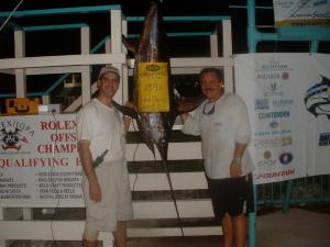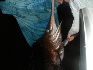 Our luck has continued and we ended up winning the Florida Swordfish Series. This series is based on the total points from the Islamorada Swordfish Tournament and the Miami Swordfish Tournament. As most know, we won the Islamorada Tournament with 700 points. This past weekend was the Miami Swordfish Tournament and we got third place weighed fish and added another release. That brought our total to 959 points which earned us first place. I was entering the Miami Tournament with hopes that we could keep our lead and win the Series. We ended up doing just that, but we really could have won the Miami Tournament. The first night we had a swordfish to the boat, pulled the lead and light off the leader, so we did have the leader in our hand. This is an official catch, but with the fish still down 20 feet, we couldn't get a picture. Unfortunately the angler made an error and the line parted on the tip. If that fish was truly 200 pounds, that would have been enough for first place and definitely enough for 2nd place. The next night was the heartbreaker though, as we had another fish to the boat, light and lead were taken off the leader, so the leader was in our hands again. The rules call for a release to be valid if you get a picture of the fish with that nights T-Shirt in the picture as well. The fish was still 20 feet deep and as the sword surged forward, the angler hooked up fell down and the hook pulled. This fish was bigger than the previous night's fish and was in everyone's opinion a solid 300 pound sword. That would have definitely landed us first place as well as biggest fish. What matters in these tournaments is that you get the big fish in the boat. We didn't do it. If it wasn't an IGFA tournament both those fish would have been darted and story over, but so be it. We still got 3rd place heaviest fish and most importantly, we won the Series.