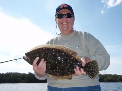 Let's start by talking about something a little different that is the great Flounder. The colder water temp has moved a lot of these great fish up in the bay. All of the Flounder we have found have been in the sand spots along the channel. This means where the grass drops off into a sandy spot then on the other side the grass comes back up. More then just Flounder are in these areas. Most of the time we are fishing for Snook or Red fish and happen to catch the Flounder. You can say this is a really good catch a lot of people would rather catch these great fish especially if they want to take some fish home to eat. Most of the action comes on days where it is a little too cold for the Snook or Red fish to be active with the live bait. It doesn't get too cold for the Flounder to bite. I will say it's a hard fish to target but we did have a few days where we caught 5-10 plus fish. As you can see in the picture we did manage to catch a few big ones.