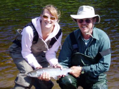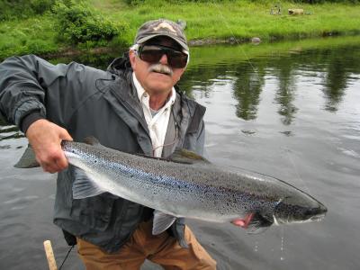 Although the big fall run of salmon we always get in Sep and Oct has not started yet fishing has been much better so far on the Main River and the Renous as our fishermen have had good sucess since Sunday on. the better flies have been the Ally's Shrimp the LT Special and the General Practitioner.all know fall flies.