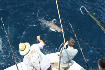 Today ran the boat and Paul was in the cockpit working hard as normal. We were on a big convention and the group we had only wanted to catch big sharks so we spent the whole trip using 200 lb test 130 penn reels and big kingfish head on the bottom four rods it took a few hours but once we got the bite the fight was on. It took a good 30 min and we had a rare Cuban night shark. The first one I had ever caught in the daytime it was a great trip.