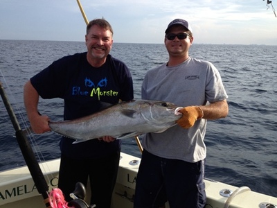 While this is mostly surface action, this time of year is when we turn to bottom fishing for Snapper, Grouper, Amberjack and more. The Amberjack in this picture gave George quite the fight, a 20 minute battle of tugging on both ends.