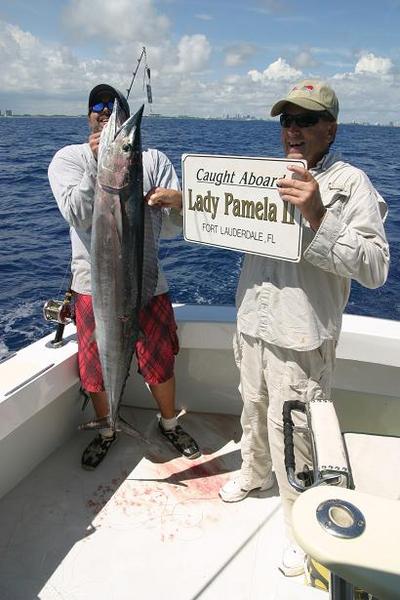 Deep Sea fishing has been phenomenal in South Florida this month. Loads of Kingfish and Bonito make it easy for everyone to catch a fish and even go in for seconds. The average size Kingfish is anywhere from 5-10 lbs and the Lady Pamela II has landed some monsters that tipped the scale at 40 lbs plus. Not only are the Kings solid offshore, the Blackfin Tuna and Wahoo bite has been consistent in the 200 – 500 foot range. These fish put up a wicked fight and man are they tasty!