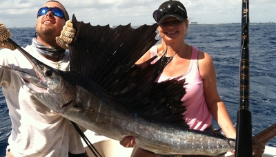 I had an early morning call this past Sunday for a Fort Lauderdale fishing charter from Kaiser and Judy who were in town this week. A friend had recommended us here @ All-Inclusive Sportfishing and they wanted to swing by and check out the Marlin My Darlin as they headed over to the beach for a morning walk. They hustled over and met Capt. Kopper and 1st mate Brian just before they cast off on the day's charter. I spoke with them a second time shortly thereafter while they were still on the beach and they filled me in on what they were hoping for. Their last two charters (Cabo in Mexico) had resulted in very slow fishing for them and no fish. I explained that the bulk of our catches here this time of year are Bonito and Kings, maybe a Tuna, etc.