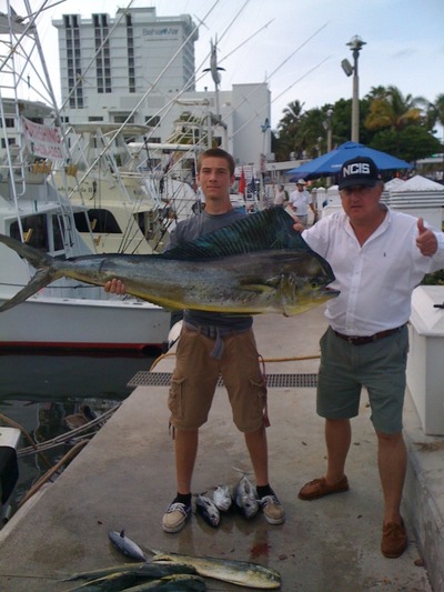 Fort Lauderdale fishing trends are rapidly entering the warm weather mode and our most welcome visitors are the schools of Mahi-Mahi beginning to show with some regularity offshore. Many of the schools of these Mahi-Mahi contain more fish than in recently past weeks and it really pays to be ready with a few spinning rods when the opportunity at a school of fish presents itself. We had the Spanglers aboard today for a three quarter day trip. They are repeat customers and Ed is always a pleasure.
