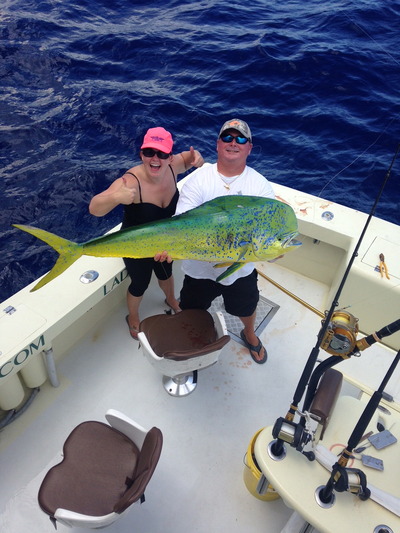 The deep-sea fishing here off Fort Lauderdale has heated up with the weather this week. Yesterday (the 8th) JJ and I had a morning trip on the Lady Pamela II and we got into a bunch of vermilion snappers in 350 feet of water. These fish, weighing up to two lbs., were voracious, slamming the dead squid bait as soon as it got to depth. This afternoon we had another great fishing trip including landing a couple of blackfin tuna and king mackerel. The highlights of the day though were a brutish 40 lb bull mahi-mahi and a big hammerhead shark. The massive fillets off the mahi-mahi were more than enough dinner fare for our anglers, their friends, their relatives, even people on the street to take home!