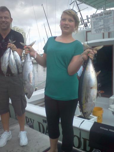Fishing Fort Lauderdale was a welcome experience for Jeff Olson and his two daughters, Mackenzie and Kylie, from Canada where the temperature there is in the single digit. They stepped on board the Happy Day Today with the Topshotfishing team to do some deep sea sport fishing Fort Lauderdale FL. We had an overcast day with winds out of the east at 10-15 mph, seas running 3-4 feet.