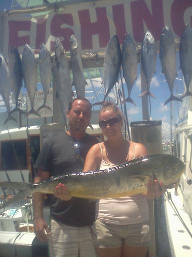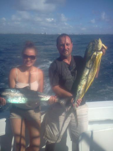 Jonathan and Stephanie Taylor from Tennessee vacationing in Fort Lauderdale decided to do some deep sea sport fishing aboard the Happy Day Today along with the Topshotfishing team. Winds were out of the east at 7 mph with blue skies and beautiful sunny weather.