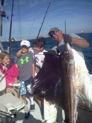 Tony Silvestri and his son Andrew from Tulsa, OK along with friend, Rodger Goldman and his children, Philip and Meredith, from Ponte Vedra, FL chartered the Happy Day Today along with the Topshotfishing team to do some deep sea charter fishing in Fort Lauderdale FL. The children on board ranged from ages 5-9. Winds were out of the northeast at 15 mph, seas running 4-5 ft. with clear skies.