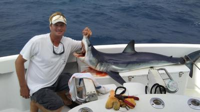An early influx of Sailfish has arrived. For the past week the Sailfish have been seen and caught in tight in 70 ft. to 90 ft. of water, even in the "green" water. We had some good action this week with Kingfish and Wahoo fishing, as well as a Mako Shark that was caught by the Topshotfishing team in 250 ft. of water.