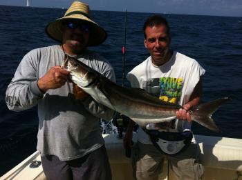 We were anxious to get out again in the afternoon and returned to where we had such good luck earlier in the day.Trolling out to where we had been kept us busy catching kingfish, bonito, and blackfin tuna for a few hours. Success was with us again when we sent up the kite rigs and were rewarded with a 25-lb. cobia, a beautiful fish. Another day in paradise fishing right out in front of the beaches of Ft. Lauderdale!