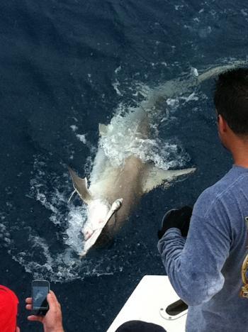 Our all-day drift boat trip on Thursday was able to take advantage of the number of large fish passing through this time of year. No surprise at hooking up mahi-mahi and blackfin tuna, but the 7-foot hammerhead shark they caught was a thrill for everyone on board.
