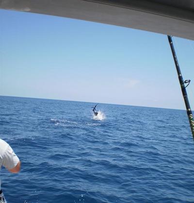 The reef is RED HOT! A short time trolling is rewarding. Fresh strip baits and planner rods catch the eye of the King Mackerel and Bonito. The Kings have showed up and man did they chunk up. Landing 10 – 30 lb'ers is common these days with the occasional 60 lb'er. These fish fight like a son of a gun and will leave you wanting more. Not only is the reef littered with Kings, lit up Sails loiter around the area as well, tapping and plucking at the bait with its spindly beak.