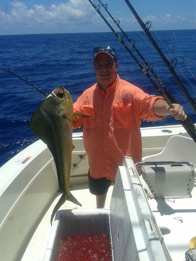 There are some Mahi-Mahi ( Dennis with a nice one in the pic) in the mix and singles continue to be popping up along the reef, and two days ago we caught them in 600, but further offshore is best so be ready to spend a bit more on the fuel bill when you head out for these Mahi.