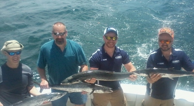 Kingfish inside on the reefs with the deep lines by far the best approach as the seas are very calm. If you can locate them it makes for a steady pick on most days such as today and yesterday, but Saturday was very tough for them as we only caught a few, with a couple of the boats drawing blanks. Getting that initial bite and then staying close is key when the schools are few and tightly bunched.