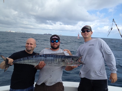 Detra and her boyfriend from Ohio were the busiest anglers of the Lady Pamela II sportfishing fleet today. The pair started the day with a nice sailfish catch, and then they hooked into something big. That something turned out to be a 350lb sandbar shark that really put a bend in the rod. It was a thrilling catch and release for the Ohioans, particularly since they were able to make the catch in t-shirts and shorts, rather than parkas!! They also caught four kingfish and a blackfin tuna to round out the day. Good job!