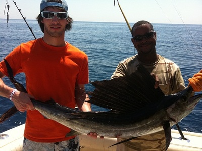 Today my friend john an his sister Pamela chartered the Lady Pamela 2 for a half day fishing charter in the morning off of fort Lauderdale beach. We cut fresh Bonita strips in the morning so we would have the best bait possible to catch a lot of fish. Once getting all the lines out two down deep and four up top we were ready to catch some fish the fish two hours were slow no bites at all. We end up trolling 8 miles south to a wreck once getting to the shipwreck we keep trolling in circles around the wreck every pass we were catching kings and Bonita an a cero mackerel. John an Pamela were catching fish for the last part of the trip when I told Dave to reel all the lines in we got one last strike a atlantics sailfish it was great john had never been deep sea fishing before an the last two hour of the trip were great up until this point john an Pamela thought it was boring. It turned out to be a great day for john an Pamela now there going to expect a sailfish on every trip they told me when they left .