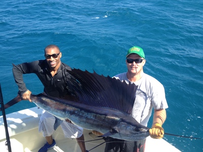 This morning Darin and I took out a few clients from Oregon and Indiana. We stopped by the Lauderdale Marina on the way out and picked up some goggleyes for kite fishing. A cold front had just come through the area so I knew it was likely that a few sailfish might be around, and that they would be hungry. We found the current out in five hundred feet of water in front of Port Everglades and it was a smoking north current. Darin popped the kites up and in less than 20 minutes there was a sailfish jumping behind the boat. Angler Paul jumped into the fighting chair and landed the first fish. It turned into another crazy sailfish day as we proceeded to catch six sailfish in a row, one after the other. The weather may have been a little cold but the fishing sure was hot! What a great day for kite fishing.