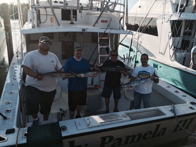 Today was Wednesday, or hump day, so we humped the Lady Pamela II well offshore of Fort Lauderdale for some mahi-mahi fishing. We located a big sargassum weedline in 800 feet of water and began to troll. There were plenty of mahi around but we could not get them to bite. We did have success with the wahoo though, boating four really nice fish. One of the other Lady Pamela II boats did well also, boating a big amberjack and a bunch of vermilion snappers.