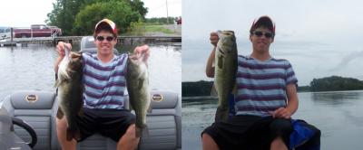 The frog fishing on the thick mats of grass is really starting to kick into high gear. The last couple of trips that I have done my clients and I have had 20 to 30 + bites a day and are catching a lot of good quality fish. The last 3 trips that I have done consisted of a 1/2 day trip were we boated 14 fish and had 10 of them that were 3 3/4 pounds and up to 5 pounds. 8 of which were 4 to 4 1/4 pound fish. The next day we fished a full day and had around 40 bites and the size really varied. We had some that were only a pound and had some on up to 6 + or - pounds to our best estimates. We did boat 14 fish that were all around 4 pounds apiece. Today's trip was a little tougher. The storms that passed through with the high winds yesterday evening really played a toll on my mats. The rain beat them down and they had a lot of water standing on them, which is not a goof thing. We had around 20 bites and only boated 12 fish. The size was really lacking their ro. The biggest was maybe 3 3/4 pound.