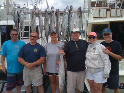 Pictured is Susan and her group that joined us aboard the Marlin My Darlin for a half day charter. Action was the request and we opted for trolling as the number of bites trolling has outnumbered the bites on the live baits. Some truly large Kings on the live bait and the larger Tunas as well, but action, good action, is coming on trolled baits along the reef line. As expected the deep planer rods running at 45 to 65 feet below the surface with light leaders have produced the most bites. A lot of fish holding right at the reef in 100 feet of water.