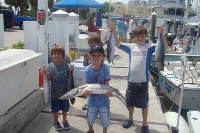Today we had Dan and Randy from Davie Florida and from Adventurer Florida got together and gathered up their kids Drew 7, Dean 5, Gabe 5, and Jaden also 7 years old for a morning of Deep Sea Fishing aboard the Hooked Up.