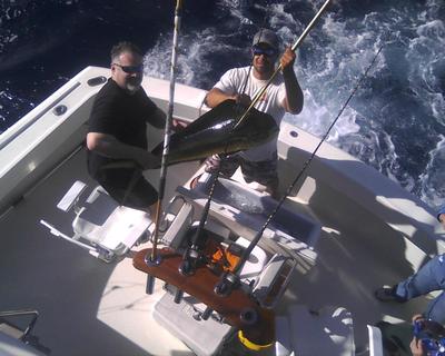 Inshore catches include some good sized Kings and Blackfin Tuna. Numerous Bonito still happy to grab a bait and those bigger Sharks are still biting (smaller ones as well). Water clarity is fluctuating wildly from day to day on the reefs inshore and this time of year we really don't mind a bit of green as long as it doesn't get too discolored. If you choose to fish inshore on the reefs the slightly off color water will often improve the Kingfish bite, and as we have previously noted, some are fatties.Tight lines and good fishing. Rick
