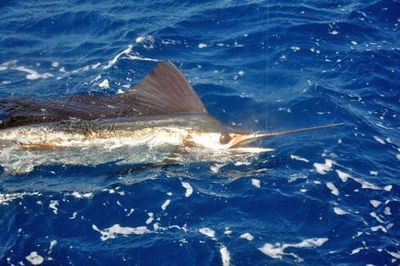 Here is the really cool part of this trip. As we were running home in get this 58 feet of water J.J. noticed a sailfish just tailing down sea. So we stopped the boat to see if we could find him again.