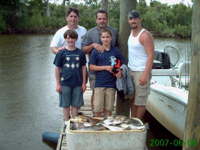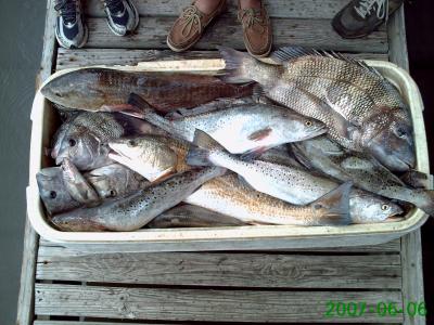 Fun day of fishing on the Beach Wednesday. Jeff, Joe, Joshua, John, and Chelsea were on board. Armed with Campo's live shrimp we headed on out to the Sound. At our first stop the gang was bringing in nice Trout one after another fishing with live Shrimp on a Carolina rig with a light weight. By the time this action faded 97 Trout were chilling out in the box along with a bunch of Channel Mullets. We made a move to another rig and here is where we ran into some bigger fish. We picked up 4 Trout that were close to 4 pounds each along with a variety of several big hard fighting fish. Our final catch for the day was 101 Trout, 13 Sheepshead, 25 Channel Mullets, 3 Reds, 2 Drum, and 2 Flounder. It was a fun day with a great group of people.