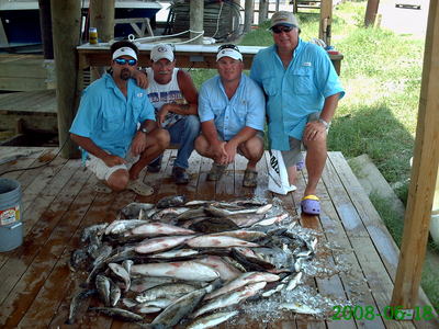 Fun day Wednesday on the Beach. Joe Casanova from CT Traina Inc. brought the Cummings Mid South gang, Butch Scarborough, Mike Lee, and Terry Falgoust to the Beach for a day of fishing. We started out on the edge of the Sound and the guys caught some very nice Trout and some keeper Reds, but the bite was very slow. We made a move closer in and got on a good and fast Trout bite. When the tide started to shift the bite died. Made a couple of more moves catching fish at each till the heat took its toll and our bait was all gone. All fish were caught on Campo's trained live shrimp under a cork. Everyone had a great time and they guys were as fun to fish with as usual. Total for the day was 109 Trout, 6 Reds, 7 Sheepshead, and 1 Flounder.
