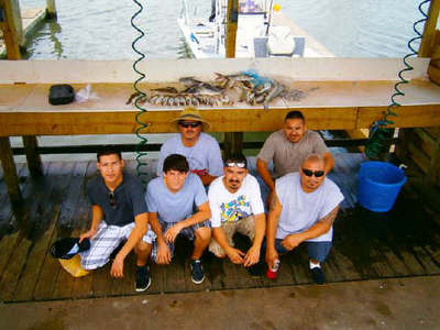 What a busy weekend. Sunday morning trip in the Galveston Bay Complex resulted in a nice catch for anglers Javier Hernandez Sr. son Javier Jr. and friends Johnny, Jose, George and Ceasar. 42 keepers which included Black tip and spinner sharks (thrown back of course) gaftop sailfish, sandtrout and big big big black drum. These guys couldn't raise there arms after this trip.