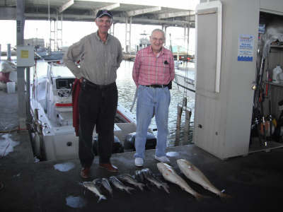 sea's were blowing up today at the jetties but, had some good people onboard . I had the privledge of taking out a 91 year old gentleman his son and his son.