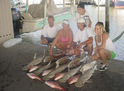 August 4,2009 August 4 Ran a Jetty trip out half day, Fisherman, Everything that hit they brought in actually had to start thrwoing back bullreds, and the slots was a fun trip.August 5,2009 Jetty Trip for 6 people busy 1/2 day finally seems the bay trips are better than offshore right now unless you make about a 75 mile run. On the jetty trips i am bringing in slot reds,bullreds,shark from 5 1/2' to 6 ' seems the normal, also bringing in spotty red snapper inshore,trout specs and sand, scattered spanish mackeral .