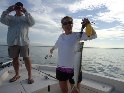 Next Kathy had a fish pulling drag and going from one side of the boat to the other. I was sure she had a Bonnet Head shark but I was amazed to see it was a jumbo ladyfish. The beast had to be 5 pounds. With the tide rising it was time to catch some large redfish.