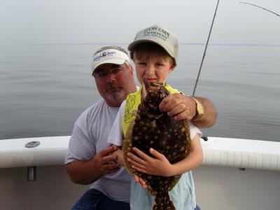 Sunday we had out George,Michele,and their two kids Tyler (7) Emma (3) and close friend Idalia (Cookie) DeJesus. Todays goal was simply just put fish in the boat and we did in a short time. First we set up on a nice drift and young Tyler puts a solid 20" fluke in the boat (no help) next his Mom, Michele reels in a nice thick 16"er that was released. Both kids wanted something a little more exciting so we headed out for some blues where the crew had a blast reeling in fish from 5-10 pounds on light tackle.