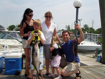 Tyler gave it his all trying to fight the blues the best he could, Michele was high hook but it was George who had the biggest of the day about a 12 pound blue that we released without bringing into the boat. Even Cookie got in on the action and caught her first bluefish. With all the action I'm sure they have some sore arms today, Great trip, kids were well behaved and we all shared a great time with many laughs. Young Ty is hooked!